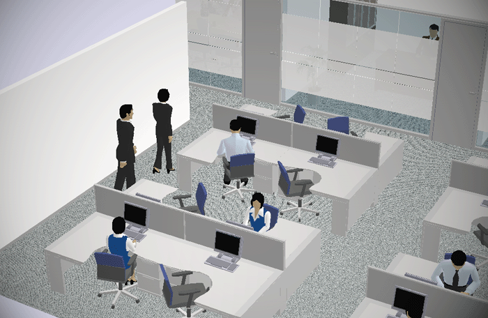 オフィスレイアウトにおいて、社長室(役員室)や応接室を執務エリアの奧に配置する事はしばしばあります。しかし、そこへ来訪者を案内する時には大変なリスクを伴っている事に気付かれているでしょうか?
