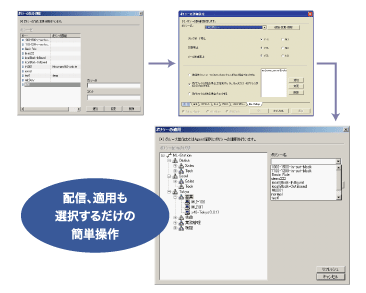 管理者から各端末使用者へ、一括保守と管理を実現。便利なファイル配布機能、アンチウイルスのアップデートの強制指示など、端末の保守を徹底強化。リモート操作機能を使えば、管理するPC端末が世界中どこにあっても遠隔操作が可能です。