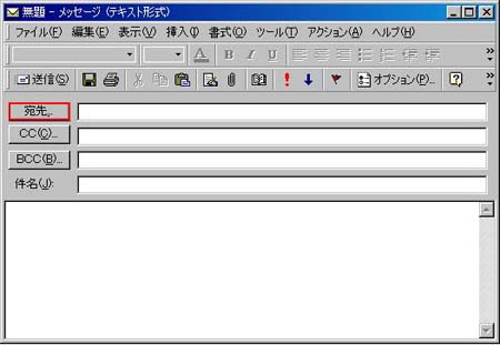 A下部分に表示されている宛先、CC、BCCの3つのボタンに注目して下さい。これらはメールの送り先を登録する項目です。