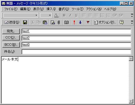 下画面の設定でメールを送信すると、受信者test1〜3には、受信したメールから次のことが分かります。